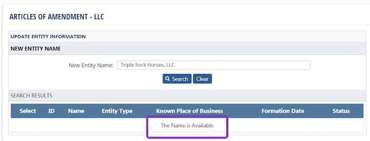 If you file an amendment for a name that’s already taken, the state will reject your filing. And if that happens, you’ll need to re-file with a different name.