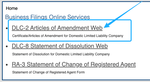 Click on the form “DLC-2 Articles of Amendment Web”.