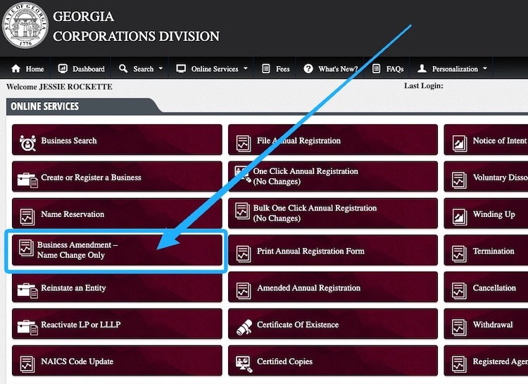 Note: In most states, it’s called the Department of Revenue or Department of Taxation. In Georgia, the Georgia Tax Center is part of the Department of Revenue, and this is who you’ll update with your new LLC name.
