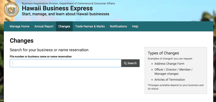 To avoid that, look up your desired Hawaii LLC name ahead of time using the state’s business entity search.