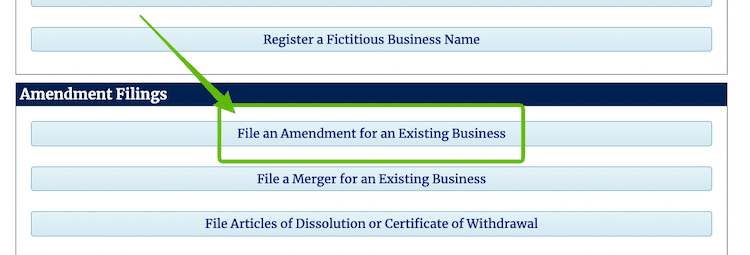 Click the button to File an Amendment on an Existing Business.