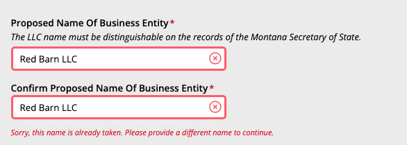 Make sure you searched your Montana LLC Name before continuing.